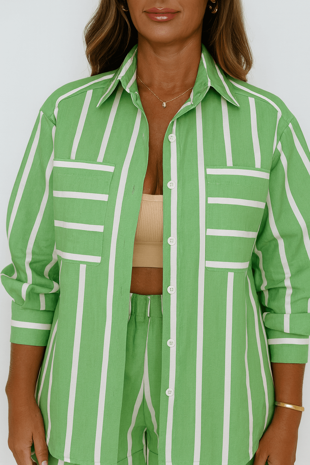 Adeline | Striped Button-Down Shirt - Relaxed Fit - Chest Pocket Detail - Roll-Tab Sleeves